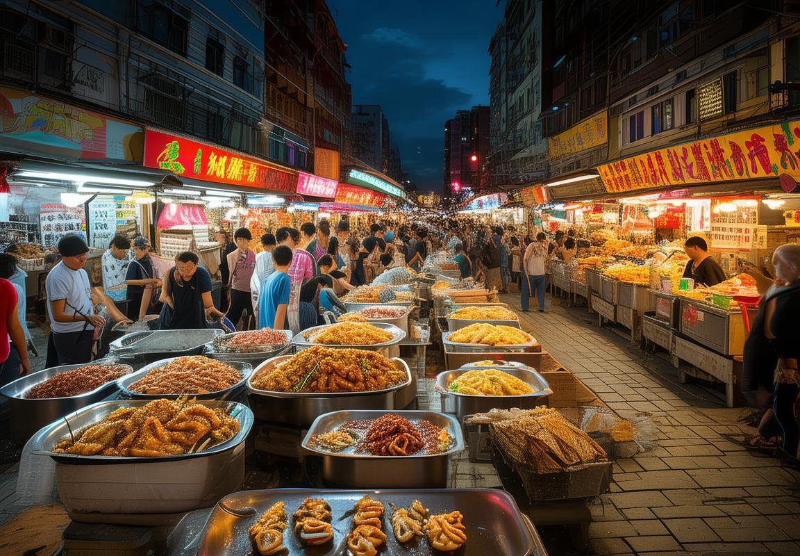 結尾:台灣夜市,一個充滿活力與創意的美食殿堂。這裡的味蕾挑戰,不僅是食物的滋味,更是一段生活體驗的紀錄。走在夜市中,每一個小吃攤都有一個故事,每一口小吃都是對台灣文化的一次體驗。